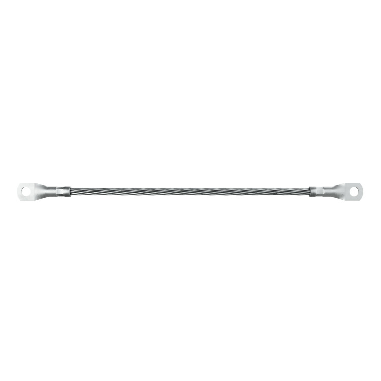 Заземляющий проводник с наконечниками под винт М10 предназначен для подключения к системе заземления металлических конструкций, корпусов машин и аппаратов, размещенных на открытом воздухе. Проводник выполнен из многожильного алюминиевого провода. Использование алюминиевого проводника под землей запрещено. Площадь сечения проводника - 50 кв.мм., длина - 750 мм.