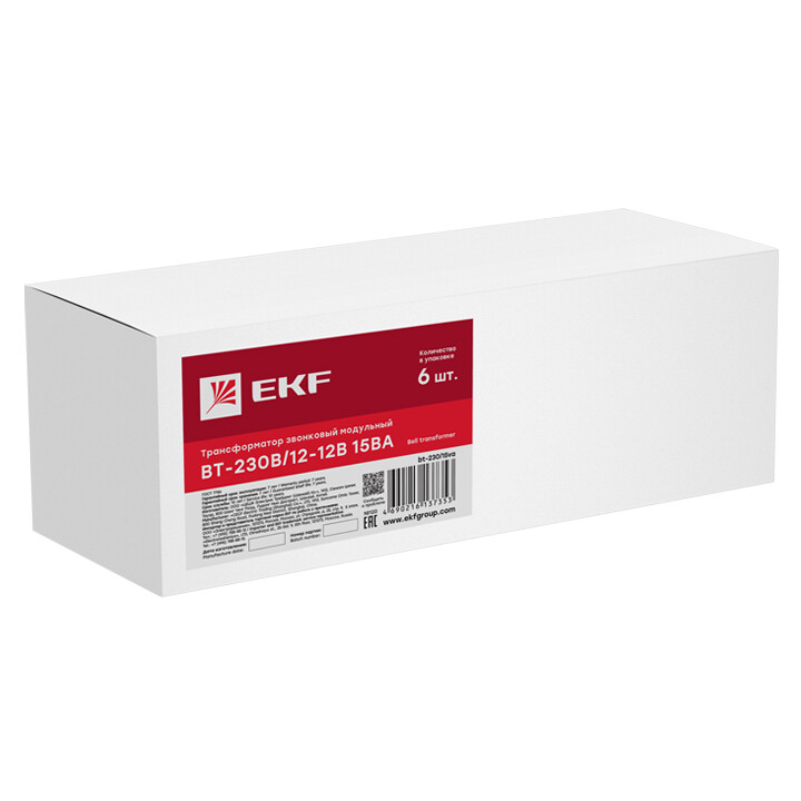 EKF PROxima Трансформатор звонковый модульный BT-230В/12-12В 15ВА.