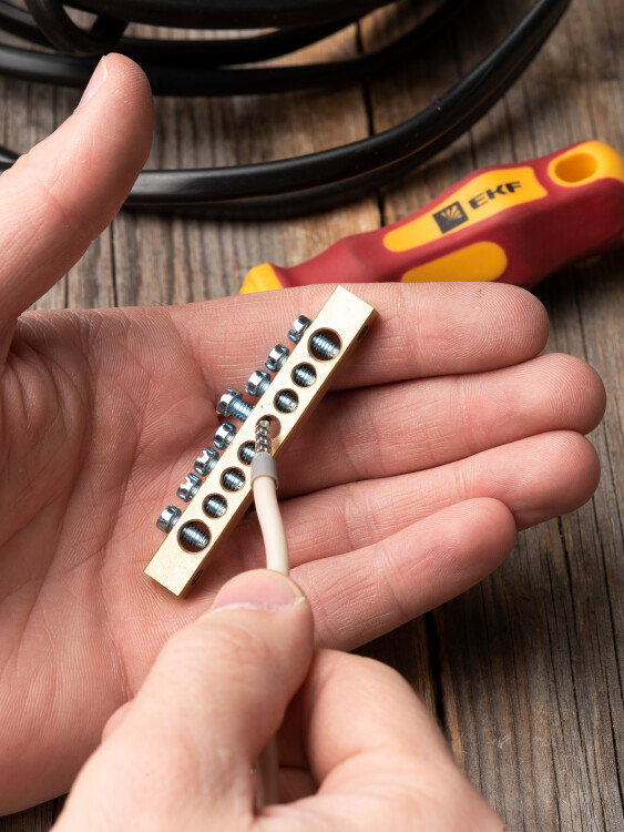 Шины предназначены для присоединения нулевых проводников (шина N) и заземления (шина PE). Шины выполнены из латуни и никелированной латуни. Нулевая шина устанавливается на изоляторе.
