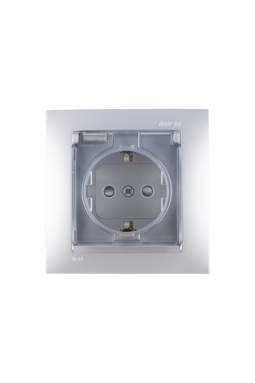 Simon 15 Алюминий Розетка с/з, со шторками, с крышкой, IP44, 16А, 250В, винт.зажим