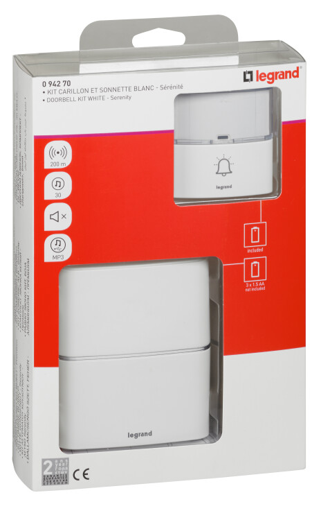 Legrand Звонок беспроводной - комплект "Премиум" - 30 рингтонов - дальность 200 м - цвет белый.