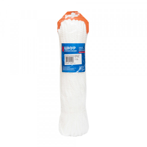 Область применения: применяется в быту (обвязка, упаковка, шнуровка), для монтажа и обустройства тентов, навесов в летних кафе, при производстве спортивного инвентаря, туристического снаряжения, качелей и гамаков. Подходит для подъема и переноса неответственных грузов. Конструкция: состоит из следующих элементов: сердечник и внешняя оплетка. Материал: полипропилен. Температура эксплуатации: от -20 °C до +80 °C. Особенности: полипропилен, из которого изготовлен шнур, является синтетическим материалом, имеет повышенную прочность и высокий уровень износостойкости. Вязаная конструкция придает изделию дополнительную мягкость, что обеспечивает простоту в вязке узлов. Преимущества данного шнура: гибкость, эластичность, малый вес, устойчивость к ультрафиолетовому излучению, положительная плавучесть.