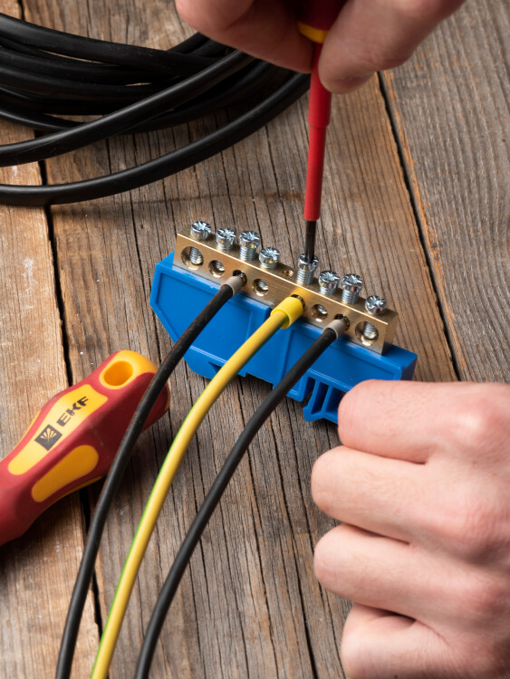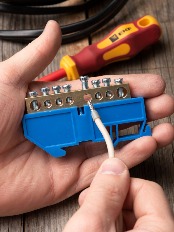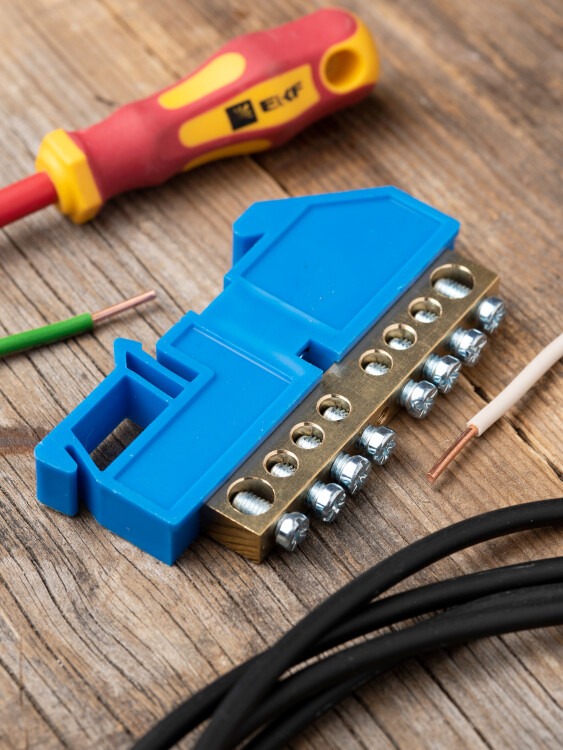EKF PROxima Шина "0" N (8х12мм) 8 отверстий латунь синий изолятор на DIN-рейку.