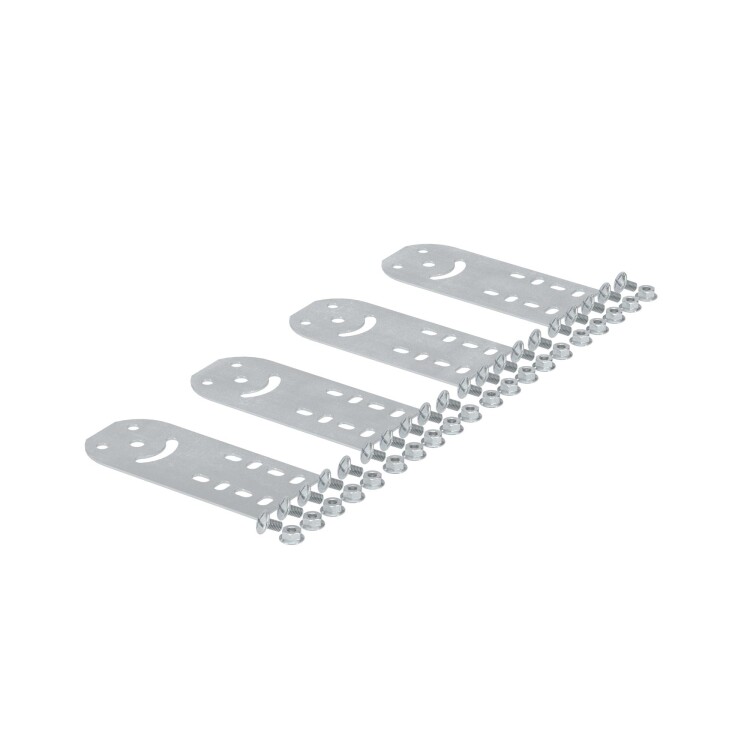 Исполнение аксессуара – "сталь, оцинкованная по методу Сендзимира". Пластина подходит для применения с лотками высотой 50 мм и шириной от 50 до 600 мм. В комплект входят 4 пластины и включены необходимые для монтажа метизы.