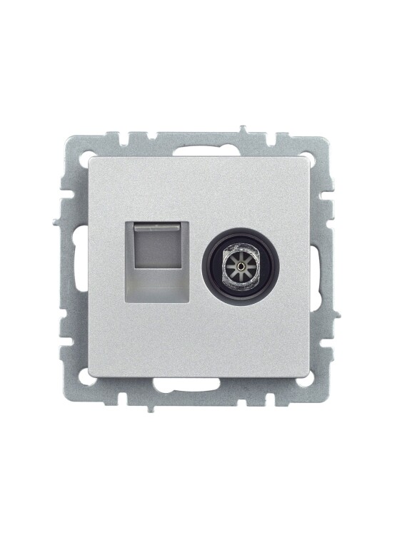 IEK BRITE BASE Алюминий Розетка двойная TV+RJ45 кат.5E РТВ/РК12-БрА