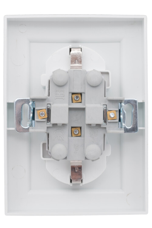 EKF Basic Минск Белый Розетка 2-ая, с/з,со шторками, 16А, СП.