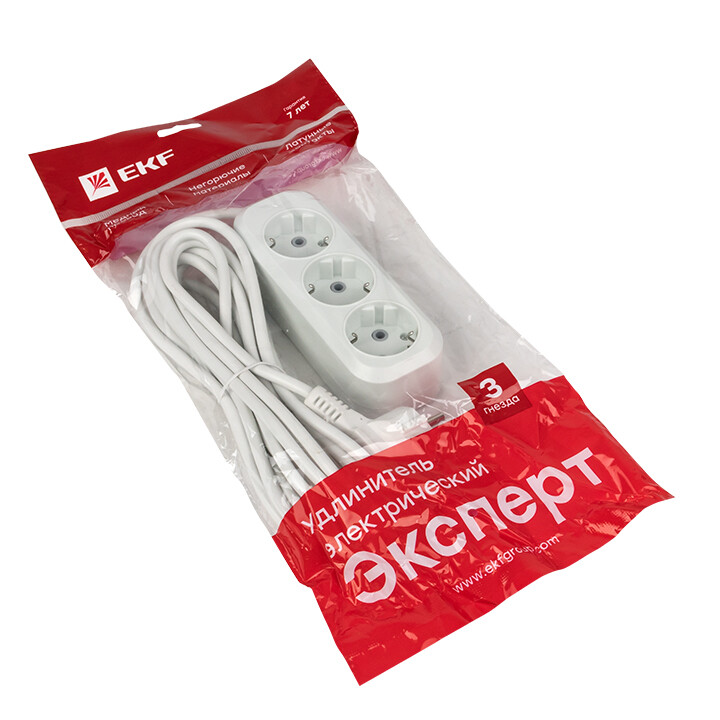 Удлинитель EKF серии Эксперт станет отличным решением, чтобы подключить до 3х приборов в нужном месте. Розетки расположены под углом 45°, что позволяет подключить много потребителей с разными типами вилок.