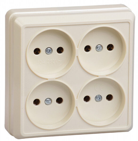 РС24-2-ОК Розетка 4местн. без з/к 10А откр.уст. ОКТАВА (кремовый)