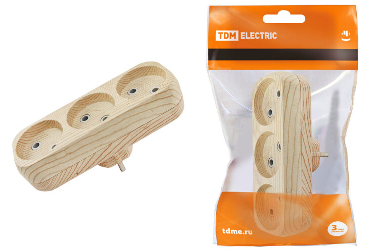 TDM Блок на 3 гнезда 2П б/з плоский 6А 250B "Эко" (сосна)
