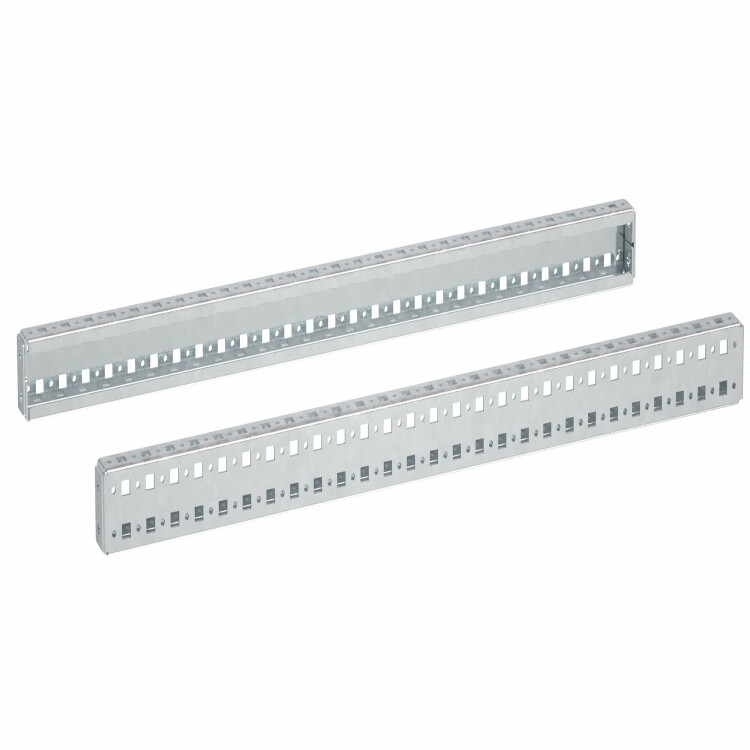 Рейки поперечные усиленные предназначены для организации тяжёлых шинных трасс и другого тяжёлого оборудования. Имеют две монтажные перфорированные плоскости. Монтаж осуществляется между рейками, установленными по глубине шкафа. Подходят для шкафа шириной 1000 мм.