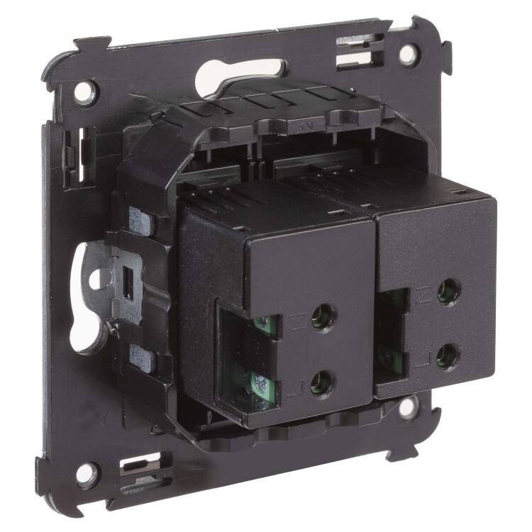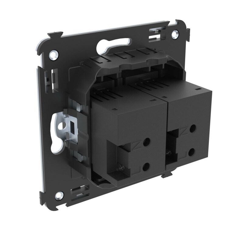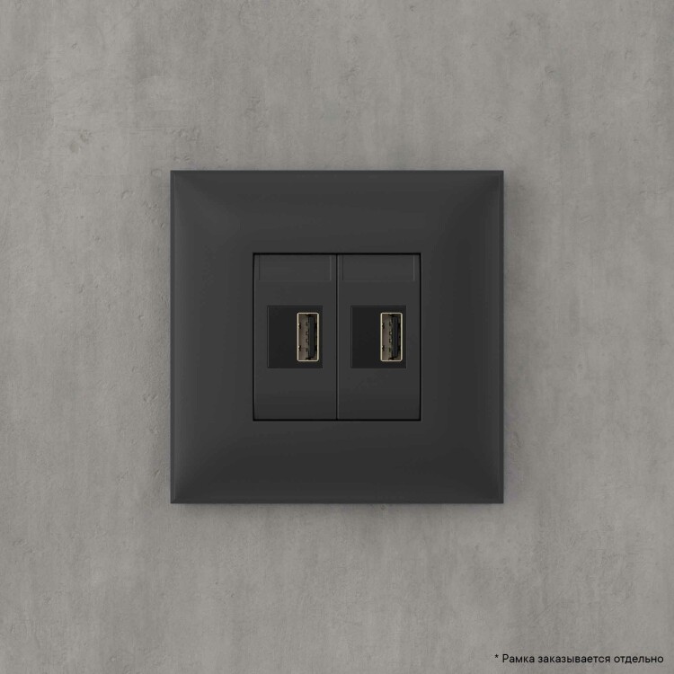 USB зарядное устройство в стену. Назначение: Назначение: для монтажа в подрозеточные коробки глубиной не менее 45 мм (код 59301); используется для подзарядки электронных гаджетов. Характеристики: винтовые зажимы; номинальное напряжение – 220 В; частота – 50–60 Гц; напряжение на выходе – 5 В; номинальный ток на каждом выходе - 2,1 А. Кол-во модулей: 2. Цвет: Черный матовый". Производитель оставляет за собой право вносить во внешний вид изделия изменения, которые не влияют на его функционал, безопасность и надежность.