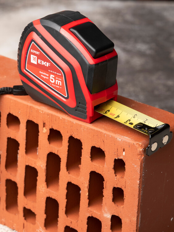 Строительная рулетка EKF серии Expert предназначены для проведения линейных замеров и могут применяться как в бытовых условиях, так и профессионалами. Рулетки обеспечивают высокую точность результатов линейных измерений. Инструмент прочен и долговечен в использовании, так как обладает ударопрочным двухкомпонентным корпусом и упрочненной стальной лентой с нейлоновым покрытием. Покрытие матовое, не блестящее для удобства считывания показаний и защиты от бликования. Разметка, нанесенная на обе стороны ленты для удобства измерения ширины и высоты. Разметка на шкале выполнена ясным, крупным, хорошо и однозначно читаемым шрифтом. Корпус имеет особую форму, позволяя рулеткам уверено располагаться в руке в процессе измерений. За счет функции «Автостоп» лента легко зажимается на нужной длине и не сматывается обратно. Особая конструкция язычка с усиленными магнитами облегчают измерения, гарантируя надежный зацеп. Темляк выполнен из прочного нейлонового шнура, не трескается и не рвется на морозе, позволяет держать инструмент в буквальном смысле «под рукой».
