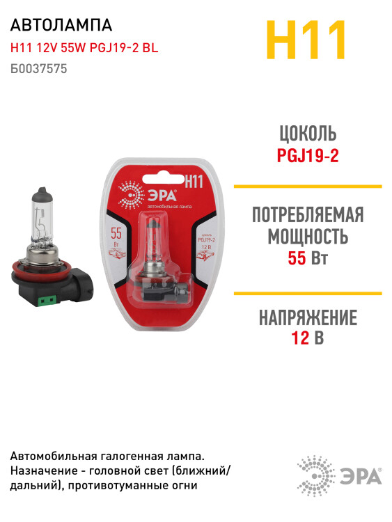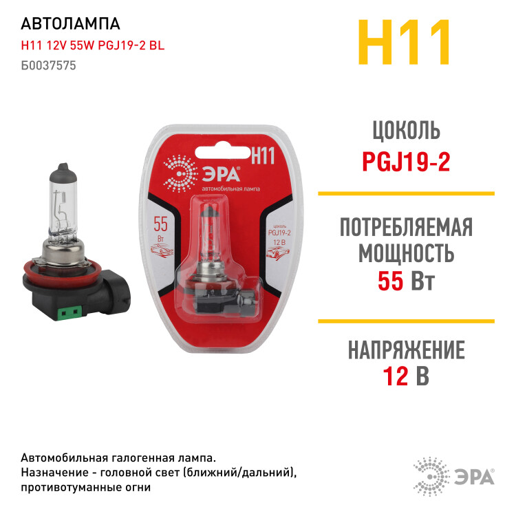 ЭРА Автолампа Н11 12V 55W PGJ19-2 BL (лампа головного света) (10/100/2000)