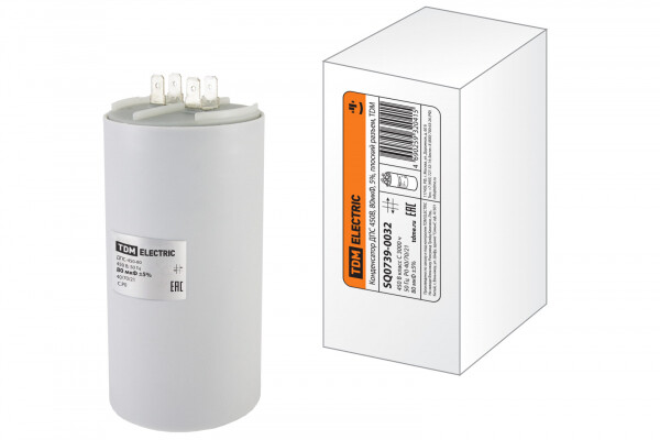 Применение:Механизмы и оборудование (электрические приводы ворот, подъемники, тельферы, промышленные охлаждающие устройства и пр.)Бытовые приборы (кондиционеры, холодильники, насосные станции, пылесосы). Материалы:Металлизированная полипропиленовая пленка.Корпус выполнен из пластика, не поддерживающего горение.Преимущества:Широкий диапазон рабочих температур: от -40 до +70 С.Восстановление электрических свойств конденсаторов до исходного значения после местного пробоя в диэлектрике.Небольшие габариты при большой емкости.Устойчивость к высокому току пульсаций. Назначение:Для использования в качестве емкостного сопротивления в цепи переменного тока.Для подключения трехфазных асинхронных двигателей с короткозамкнутым ротором к однофазной сети 230 В, 50 Гц. 0: