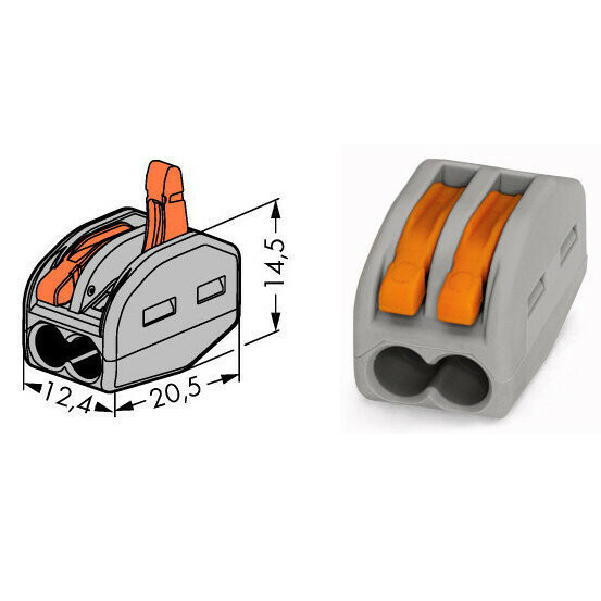 Verbindungsklemme 2-Leiter-Klemme mit Bettigungshebeln max. Dauergebrauchstemperatur 85 C grau