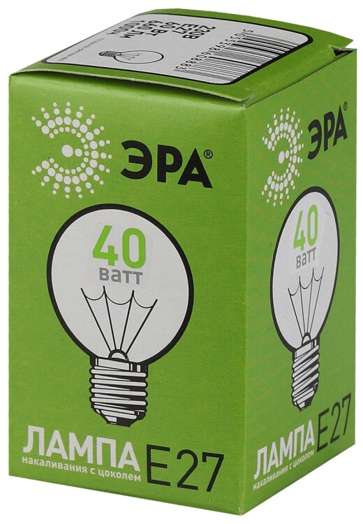 ЭРА Лампочка Р45 40Вт Е27 / E27 230В шар прозрачный цветная упаковка