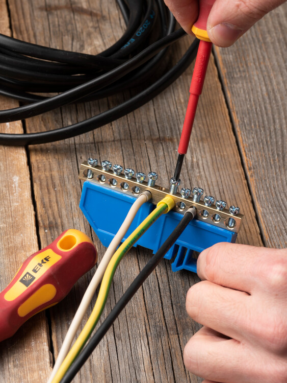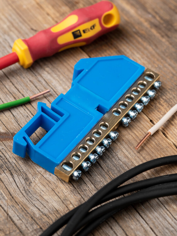 EKF PROxima Шина "0" N (6х9мм) 12 отверстий латунь синий изолятор на DIN-рейку.