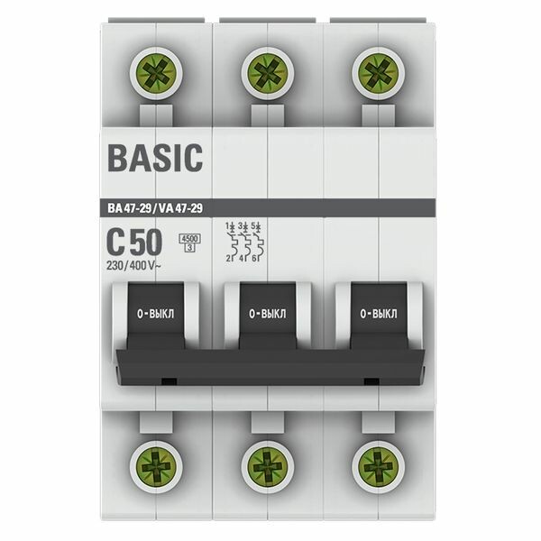 EKF Basic ВА 47-29 Автоматический выключатель (С) 3P 50А 4,5кА.