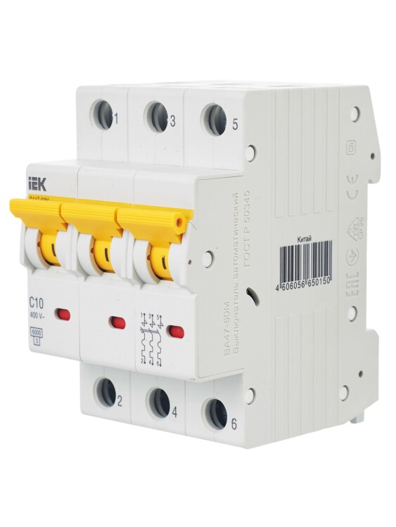 IEK KARAT Выключатель автоматический ВА47-60M 3Р 10А 6кА С