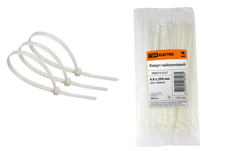 TDM Хомут 4,8х200мм нейлон (белый) (100шт)
