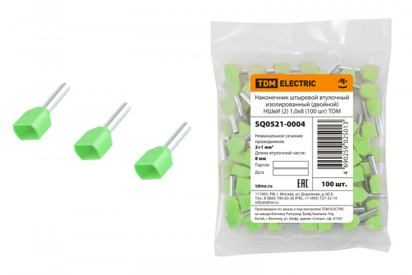 Наконечник штыревой втулочный изолированный (двойной) НШвИ (2) 1,0х8 (100 шт) TDM