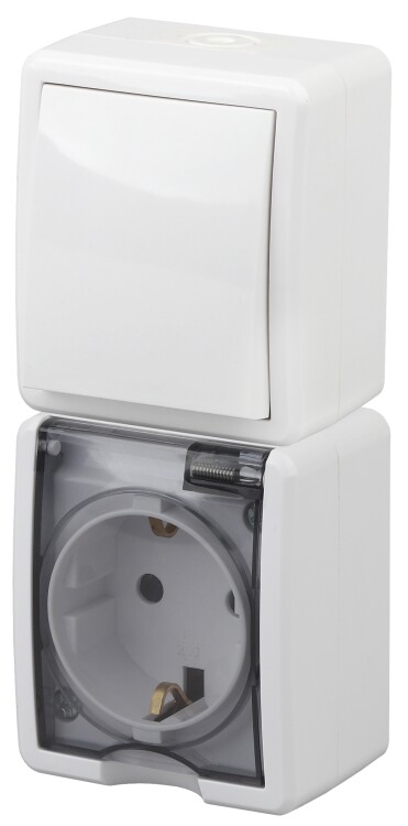 Блок розетка с выключателем влагозащищённый IP54 серии Эра Эксперт открытой установки цвет белый 11-7407-01. Номинальные характеристики 16А 250В. Устройство выполнено из качественного поликарбоната, оснащёно уникальными винтовыми клеммами ЭКСПЕРТ для максимально качественного зажима кабеля в механизме.