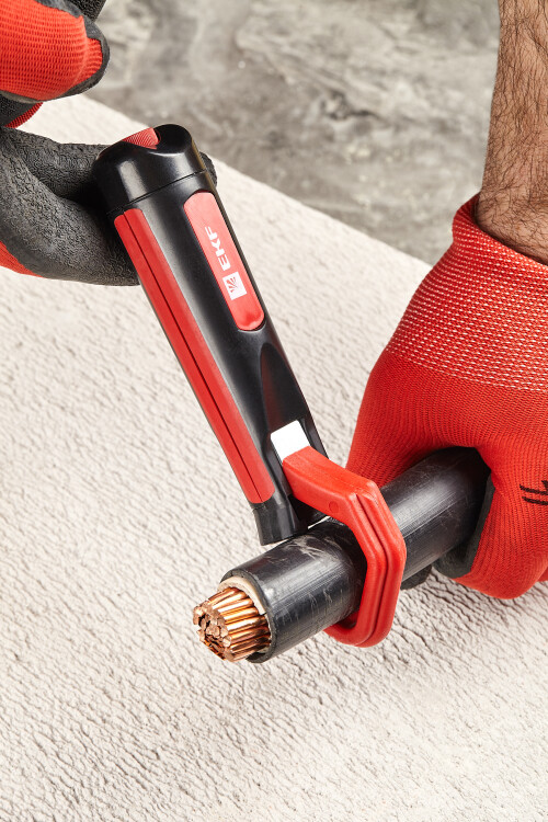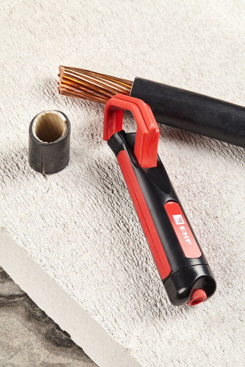 Кабельный нож WS-18 EKF используется для быстрого и аккуратного снятия ПВХ-оболочки круглых кабелей диаметром от 28 до 35 мм с помощью вращающегося лезвия-эксцентрика, позволяющего выполнять как круговой поперечный, так и продольный рез оболочки кабеля