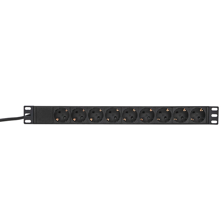 EKF TERACOM PRO Блок розеток PDU 19" 1U 10А/250В 9 розеток Schuko шнур питания длиной 2 метра сечение 3x1,5 мм2 вилка C14 корпус алюминий черный.