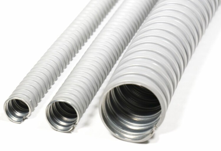 Герметичный не поддерживающий горения металлорукав в ПВХ изоляции Р3-ЦП нг 20 мм. применяется для выполнения криволинейных участков трубных электропроводок. Состоит из негерметичного металлорукава из оцинкованной стали, на внешнюю сторону которого нанесено не поддерживающее горение пиливинилхлоридное покрытие. Металлорукав в изоляции имеет ПВХ оболочку, которая обеспечивает водонепроницаемость, стойкость к вредному воздействию окружающей среды, значительно увеличивает прочность на разрыв, защищает от поражения электрическим током. Условный проход Длина L Внутренний диаметр D1 Внешний диаметр D2 Шаг навивки F Прочность на разрыв, Н 20 мм 50 19.1 23.1 6.5 150 Завод электротехнической арматуры производит Р3-ЦПнг нестандартных размеров и любых цветовых оттенков по шкале Ral под заказ.
