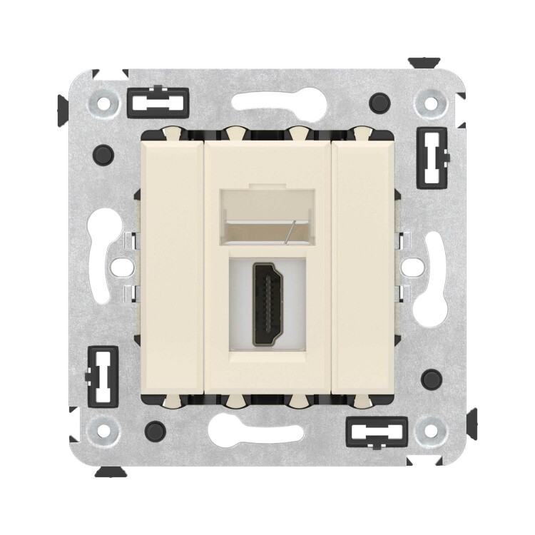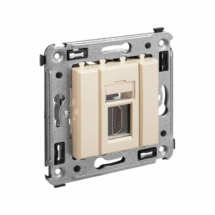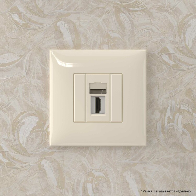 HDMI-розетка. Назначение: для монтажа в подрозеточные коробки глубиной не менее 45 мм (код 59301). Используется в качестве мультимедийной розетки для передачи сигнала (подключение проекторов, мониторов, телевизоров и др.). Характеристики: 1 модуль, с пылезащитной шторкой; с маркировочной табличкой;