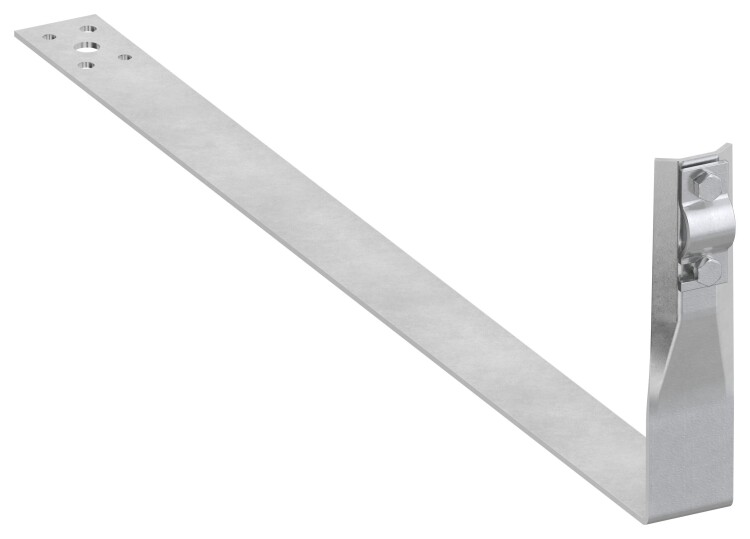 Держатель проводника круглого для черепичной кровли с болтовым зажимом предназначен для закрепления прутка на черепичной, мягкой и шиферной кровле. Держатель крепится к рейкам крыши при помощи метизов. Фиксация проводника происходит при помощи болтового соединения перпендикулярно длинной стороне держателя. Материал корпуса - сталь с гальваническим цинковым покрытием.