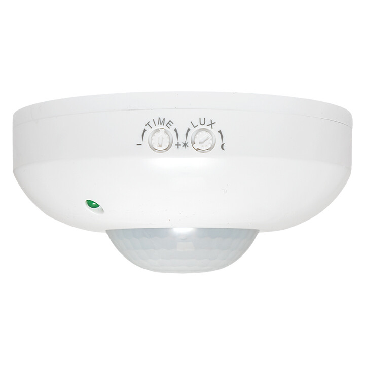 Алгоритм работы: при возникновении движения в поле зрения датчика встроенное электромеханическое реле (рассчитано на полную мощность 1200Вт) коммутирует подключенную нагрузку. После этого нагрузка находится под напряжением в течение заданного времени (от 10 сек. до 7 минут, время настраивается) и выключается. Дополнительно датчик имеет функцию контроля освещенности. Если освещенность в зоне детекции выше заданного уровня (настраивается), то нагрузка включаться не будет, что позволяет дополнительно экономить электроэнергию.