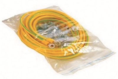 В комплект входят 2 провода заземления длиной 300 мм и по одному проводу длиной 400 мм, 500 мм, 600 мм, а также 10 самонарезающихся винтов М6, 10 шайб M6, 10 стопорных шайб М6. Сечение проводов – 6 мм2.