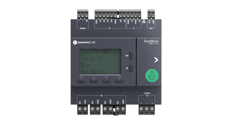 Интеллектуальное реле серии SystemePLC типа SR2. Сбалансированное решение для производителей машин. Напряжение питания: 24 VDC. Потребляемая мощность: не более 10 Ватт (0,5 А). Общее количество входов/выходов - 12. 12 IO: 6 дискретных входов, 4 дискретных выходов (реле, 3 A); 2 аналоговых входа (NTC10K, PT1000, PT100, 0-10 В, 4-20 мА). Коммуникационные порты: 1xRS485; 1xRJ45; 1хUSB (Type C). Коммуникационные протоколы: Modbus RTU ведущий/ведомый; Modbus TCP. ЖК-дисплей 1.8", 4x16 символов. Возможность расширения: да, до 7 модулей ввода/вывода серии SystemePLC S172. Объем памяти: 2 МБ (Флэш-память) и 512 кБ ОЗУ. Совместимость с пластроном: есть, глубина пластрона от 46 мм. Степень защиты: IP20. Габаритные размеры: 85x80x58. Температура эксплуатации: -20 - 55 °С.