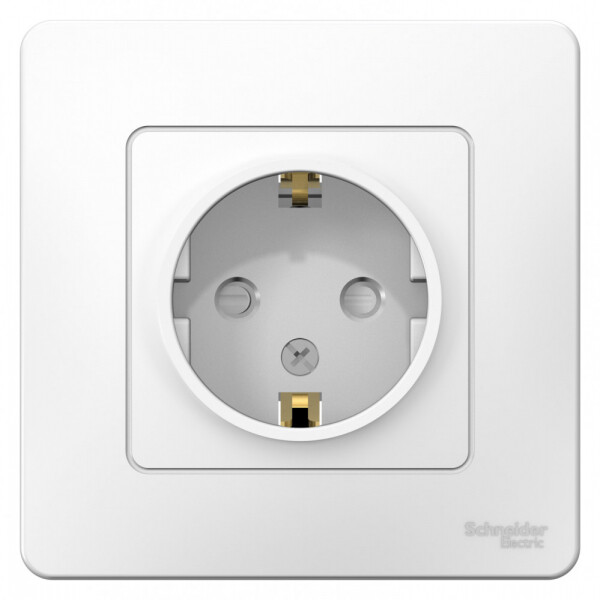 Розетка Systeme Electric (ранее Schneider Electric) BLANCA (белый, скрытой установки) одноместная, с заземлением и шторками предназначена для сетей до 250В, на ток до 16А. Шторки открываются только при одновременном равномерном давлении в оба отверстия и препятствуют проникновению посторонних предметов. Они обеспечат дополнительную безопасность в доме, где есть дети. Корпус изделия выполнен из ABS-пластика. (ранее Schneider Electric ЭУИ PRIMA RS16-004-B, RS16-004-BI)