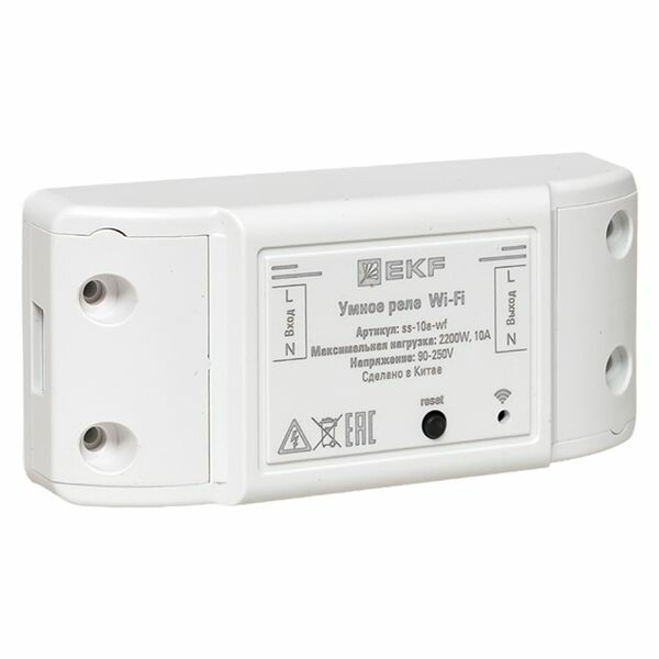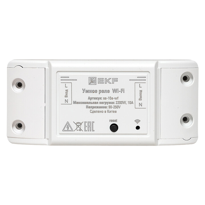 Умное реле 10А PRO Wi-FI EKF Connect предназначено для управления электропитанием любого электроприбора с мощностью до 2200 Вт и силой тока до 10 А, Имеет функции: • удаленное включение/отключение электроприборов из любой точки планеты при наличии подключения к Интернету; • отключение по таймеру обратного отсчета; • включение/отключение по расписанию; • управление голосом с помощью голосового помощника Алисы от компании Яндекс. Управление умным реле осуществляется с помощью мобильного приложения EKF Connect Home для iOS и Android.