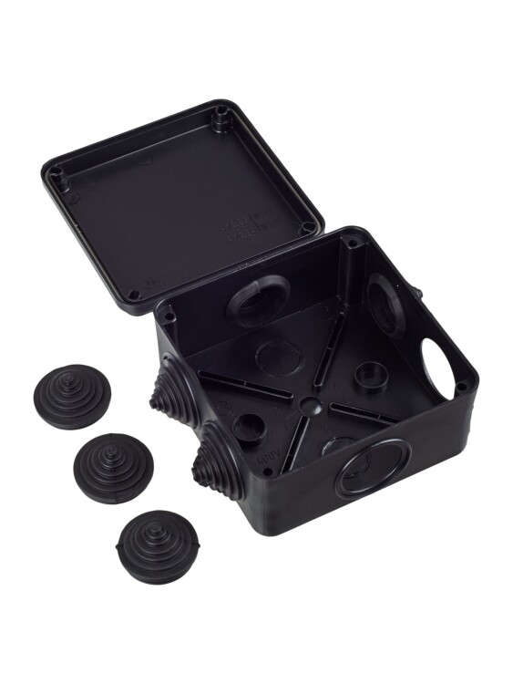 Монтажные коробки для открытого монтажа предназначены для разветвления проводов и кабелей, также для скрытия и дополнительной защиты мест коммутации. Используются как часть системы электрической канализации, состоящей из жестких и гофрированных труб. Коробки с повышенной степенью защиты могут быть использованы на открытом воздухе, а также во влажных и пыльных помещениях. Подходят для прямого монтажа. Материал изготовления: основание - полистирол, крышка - полипропилен. Материал коробок является безгалогенным («HF» — halogen-free). Цвет: черный. Степень защиты: IP55. Температура эксплуатации: -25...+40. Количество вводов: 6 - D=25мм. Размер: 100х100х50мм.
