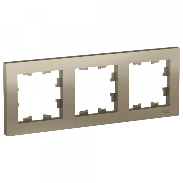 Рамка Systeme Electric (ранее Schneider Electric) серии AtlasDesign в цвете шампань трёхместная. Устанавливается в вертикальном и горизонтальном положениях. Лицевые детали из качественного ABS-пластика, устойчивого к царапинам и УФ-излучению. Позволяет гармонично вписать электроустановочное изделие в интерьер помещения.