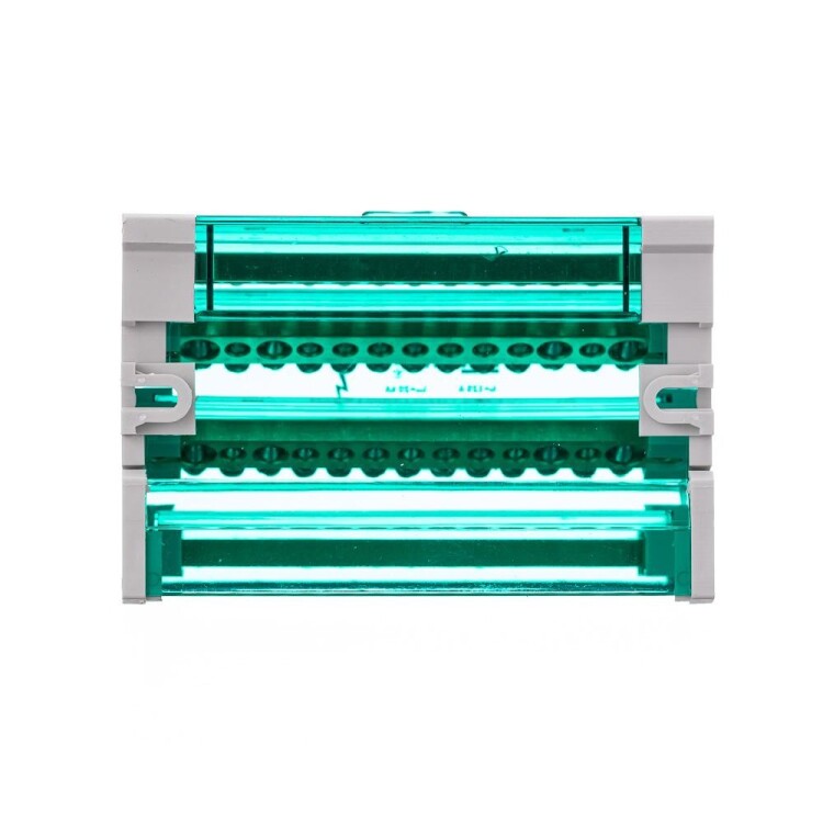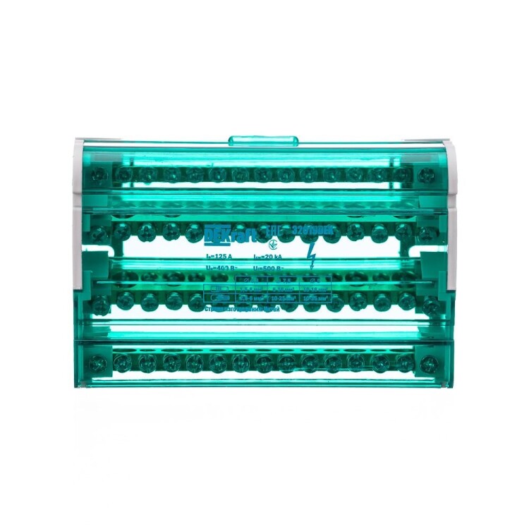 Кросс-модуль серии ШН-103 Dekraft; номинальный ток - 125 А; исполнение – 4 ряда по 15 отверстий (11х5,3 + 2x7,5 + 2x9,0); материал корпуса – нагревостойкий пластик; материал шин – высококачественная электротехническая бронза; каждая шина отдельно изолирована; цвет крышки – зеленый; установка – на DIN-рейку 35 мм или на монтажную панель двумя винтами M4; степень защиты - IP20. Применение кросс-модулей в щите обеспечивает компактную разводку кабелей и защиту от прикосновения к токоведущим частям.