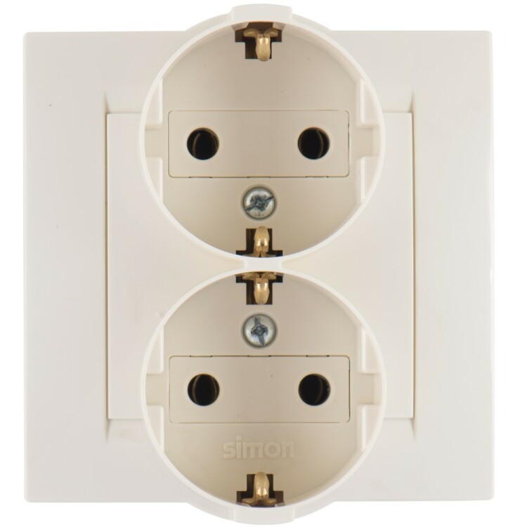 Simon 15 Бежевая Розетка 2-ая с/з литая (в сборе с рамкой)