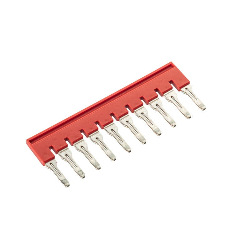 Вставные перемычки предназначены для быстрого и надежного перемыкания клемм на 6 мм². Применяются с винтовыми и push-in клеммами. Допускается выкусывание отдельных полюсов, кроме крайних. Шаг полюсов 8,2 мм. Количество полюсов - 10.