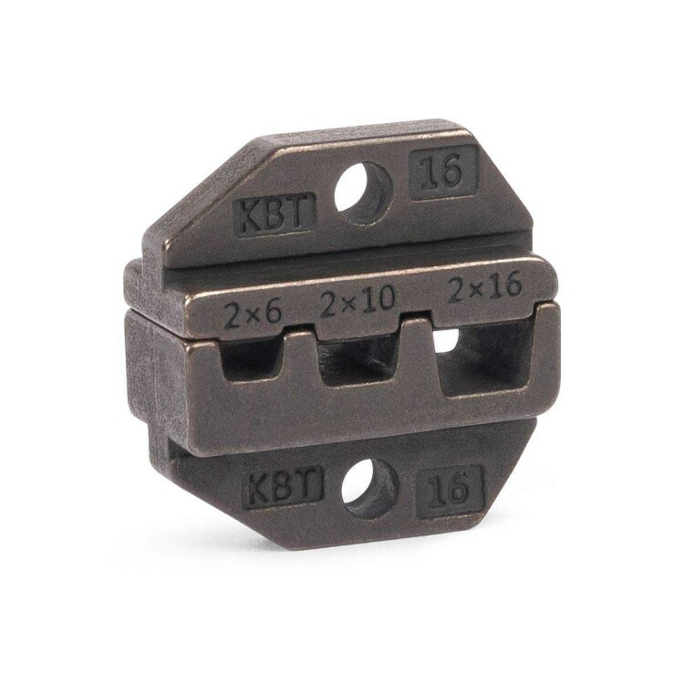 Сменные матрицы для опрессовки двойных изолированных втулочных наконечников НШВИ (2) сечением 2x6/2х10/2х16 мм. Профиль обжима трапециевидный. Совместимость: пресс-клещи СТК, СТО, СТВ, ПКЭ-01, ПКП-01.