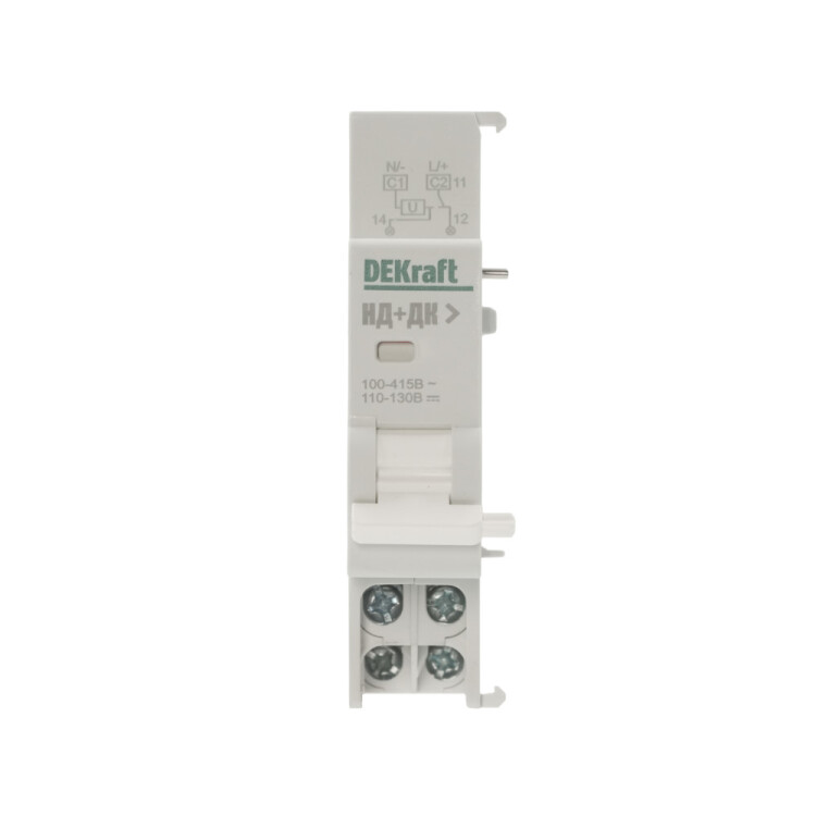 Расцепитель независимый серии НД-105 DEKraft для серий ВА-105, ВА-105 DC; предназначен для дистанционного отключения выключателя; ном.напряжение 110-415В пер. тока и 110-130В пост. тока; напряжение срабатывания 70-110% Un; ширина 18 мм; присоединение к аппарату слева.