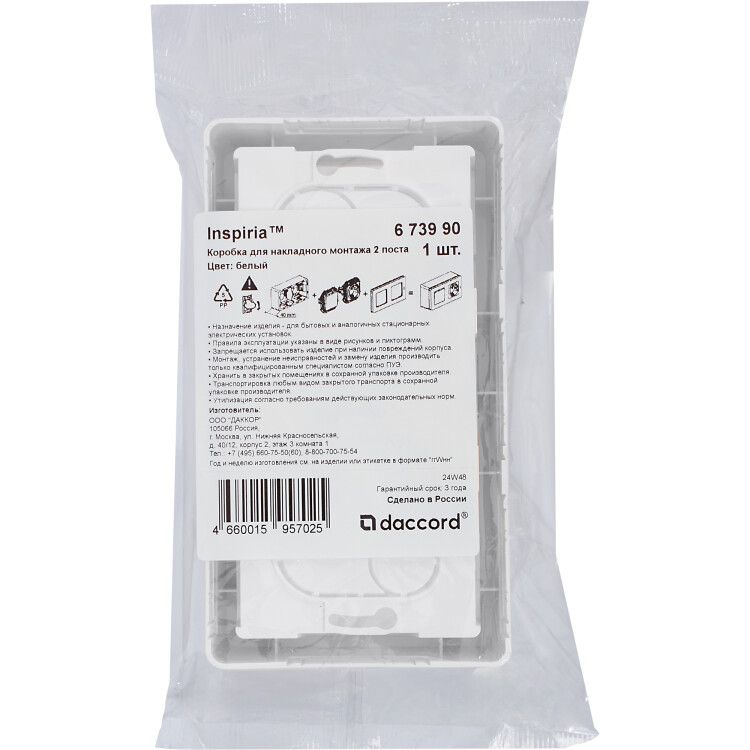 Коробка для накладного монтажа Legrand/Daccord Inspiria, 2 поста, цвет "Белый".