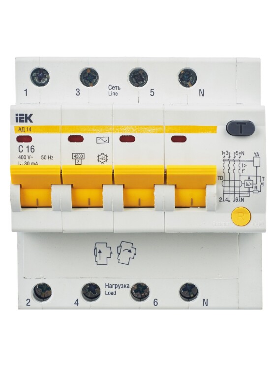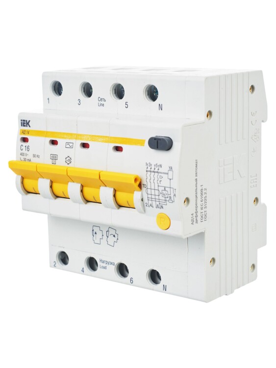 В изделиях предусмотрена индикация срабатывания от дифференциального тока, а для АД12М также светодиодная индикация включенного состояния. АД12М сохраняет работоспособность при снижении напряжения электрической сети до 110 В.