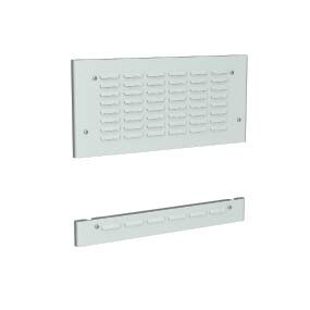 Панели изготавливаются из стали толщиной 1,5 мм с порошковым покрытием. Степень пыле- и влагозащиты - IP 31. В упаковке две панели. Высота верхней - 100 мм, высота нижней - 100 мм, ширина - 600 мм.