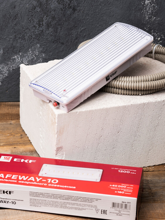 Светильники аварийного освещения EKF предназначены для указания выходов и освещения эвакуационных путей в общественных, жилых или промышленных помещениях. Источником света являются светодиоды (LED) с длительным сроком службы и высокой яркостью. Надежные Ni-Cd и Li-ion-аккумуляторы обеспечивают время работы в автономном режиме до 180 минут.