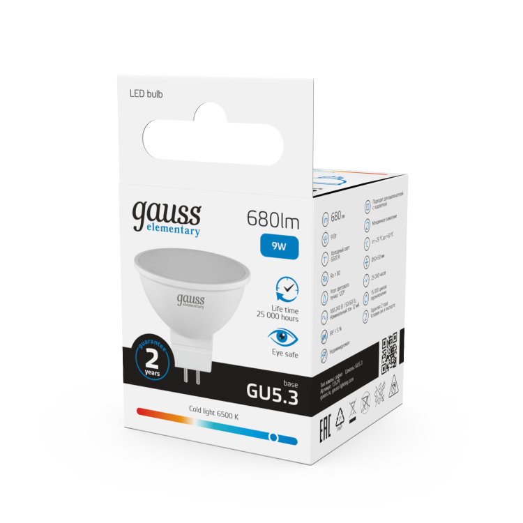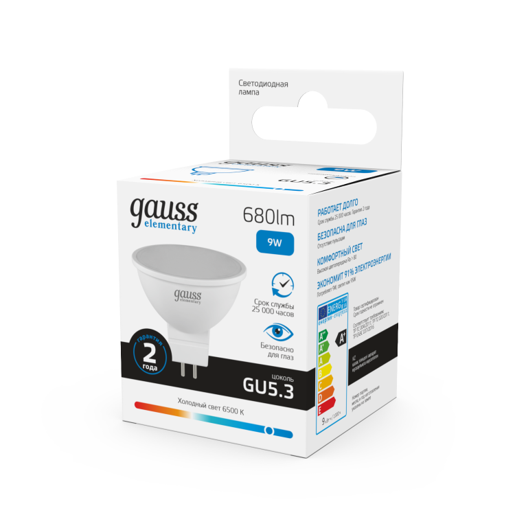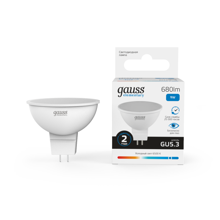 Gauss Лампа Elementary MR16 9W 680lm 6500K GU5.3 LED