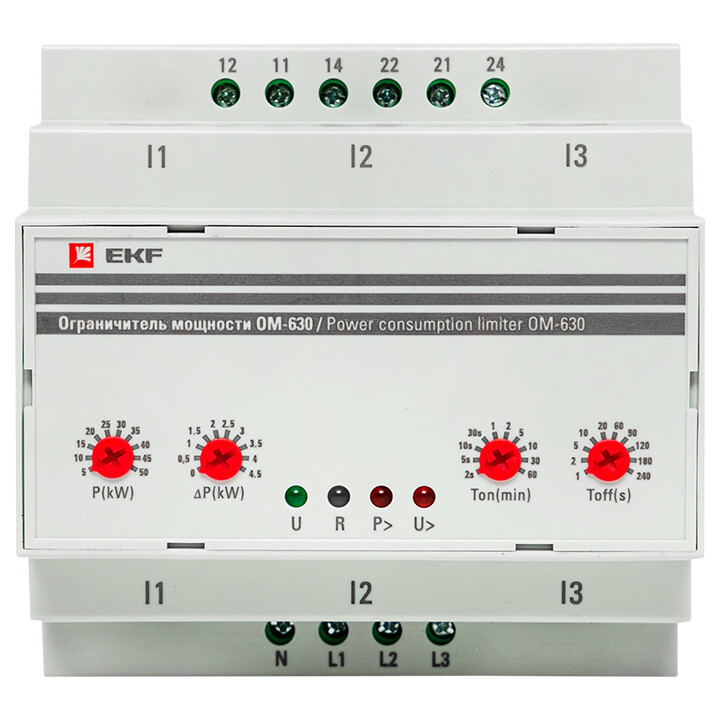 Ограничители мощности ОМ-3, ОМ-14 ОМ-630 EKF PROxima – это чувствительные приборы, которые отключат оборудование при выходе потребляемой мощности за допустимые значения. В функции ОМ-3 и ОМ-630 входит измерение мощности в одно и трёхфазных сетях соответственно и срабатывание при превышении заданного параметра. ОМ-14 обладает расширенным функционалом. Это устройство с удобным управлением и двумя цифровыми дисплеями измеряет активную, реактивную и полную мощности в однофазной сети, а также работает в режимах вольтметра и амперметра. ОМ-14 отключает оборудование при превышении порога мощности, защищает его от повышенного и пониженного напряжения. Чтобы подключить ОМ-14 в сети с током до 63А не потребуется устанавливать дополнительный контактор. Благодаря встроенному трансформатору прибор рассчитан на максимальный ток 80А. Особенности ограничителя мощности ОМ-630 EKF PROxima: - трансформаторное подключение и измерение мощности до 50 кВт, а так же управление 2-мя ступенями. Гарантия на все устройства составляет 7 лет.