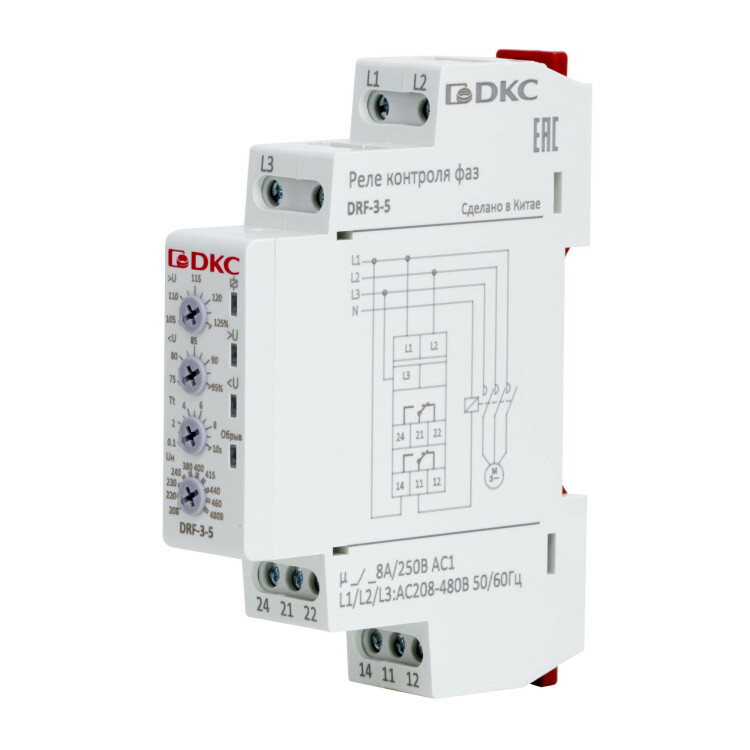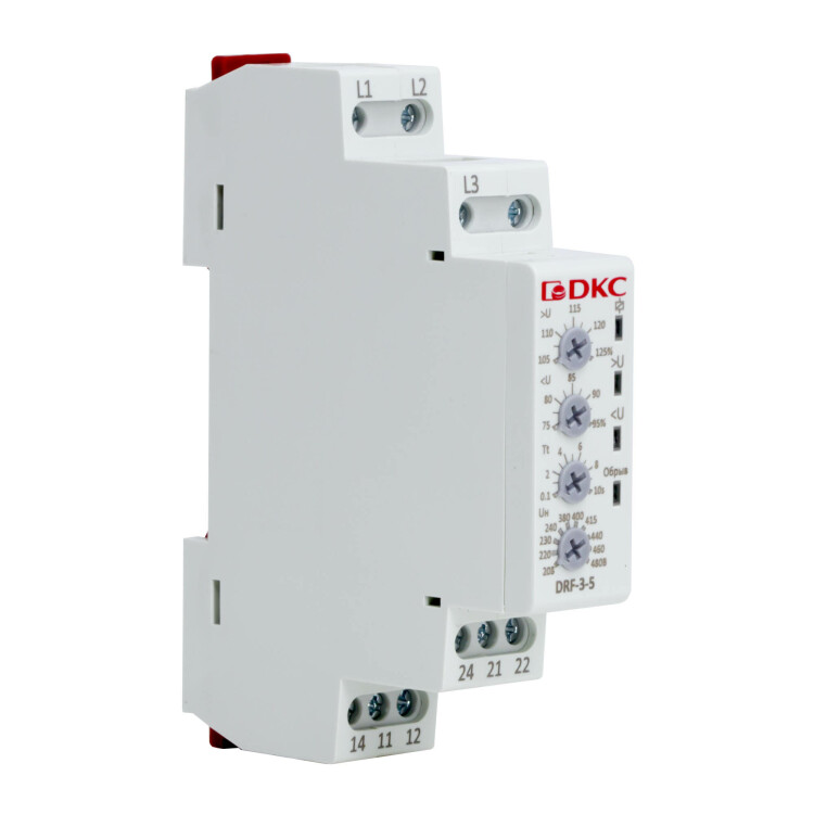 Реле контроля фаз DRF-3-5 анализирует состояние фаз в электрической сети, если обнаруживаются условия, такие как асимметрия или обрыв фазы, реле создаёт сигнал для отключения системы.
